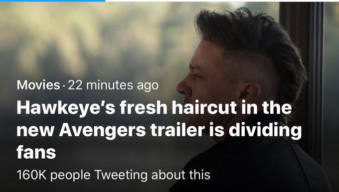 Endgame hero we deserve By Reid McCarter Published March 14 2019 Comments 46 Jeremy Renners. And like Bruce Banner youre not really supposed to notice it in. Endgame Haircut refers to a series of jokes reactions and memes about the character Hawkeyes mohawk-style haircut as shown in.